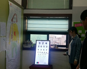 시력저하의 경계선에 있는 어린이, 중장년층 등의 시력과 안기능 예비검사를 통해 적절한 시기에 시력교정을 할 수 있도록 상담하고, 거동이 불편하거나 안경원과 안과 내원이 수월하지 않은 이들에게 안경세척과 피팅, 시력관리상담, 눈 건강 캠페인 등을 실시합니다.