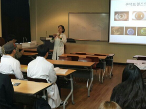 백석문화대학교 IACLE CENTER(국제 콘택트렌즈 교육자협의회)에 모여 MODULE 을 교재로 실습을 합니다.