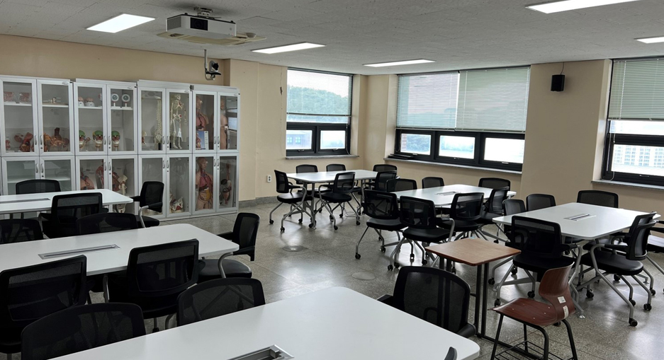 의학용어, 보건의사소통, 보건교육 등 수업에 활용되는 실습실로서 인체모형 등 42종 136점의 기자재를 비치, 팀별 협업을 통한 창의적 아이디어 도출을 위한 팀티칭, , PBL 수업 운영 교과목에 활용되며, 문제해결능력 및 협업능력이 향상됨