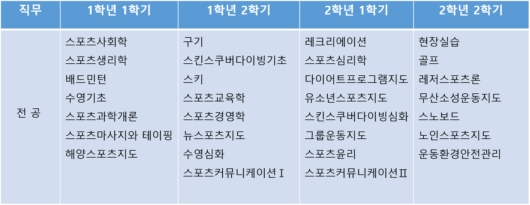 레저스포츠과(생활체육), 스포츠지도과(전문체육)