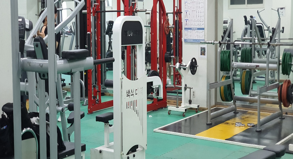 헬스피트니스관련 정규수업 및 동아리활동이 가능한 다양한 기구를 설비한 웨이트트레이닝장