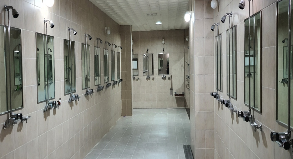 실기수업이나 동아리활동 후 50명이 동시에 상쾌하게 샤워를 할 수 있는 샤워장
